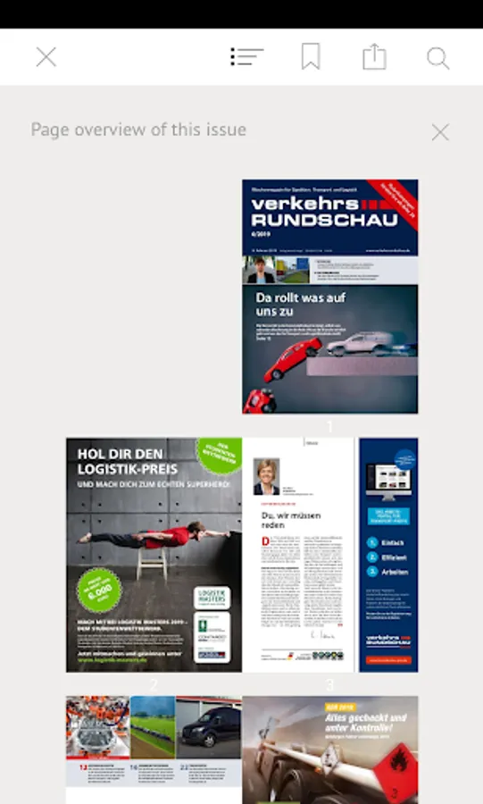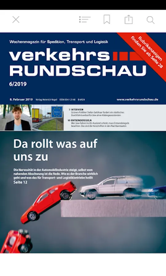 As an added benefit, you can read the latest issue of VerkehrsRundschau a day before its official publication. Plus you’ll enjoy a number of special functions like the note function, which allows you to mark one or more articles for later reading. You can also read the magazine in offline mode, anytime and anywhere.