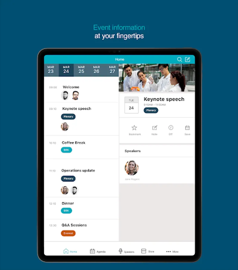 Their event journey can include fun, friendly challenges that reward actions and create memorable, collective experiences. Access all attendee and speaker profiles, content and session materials, location maps, share photos and experiences, and receive up to the minute notifications with all the latest information and activities.