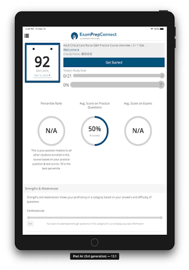 Interactive and flexible, ExamPrepConnect provides lessons, practice questions and exams with remediating rationales, and much more to help you study. A Study Plan keeps you organized and on track to complete your studies by your test date. Robust analytics highlight your strengths and weaknesses, so you know where to focus.