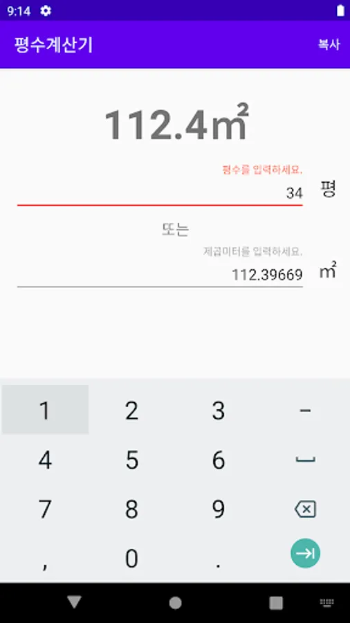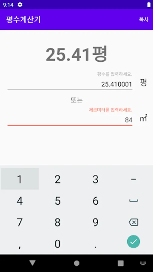 Entering acreage will convert it to square meters.