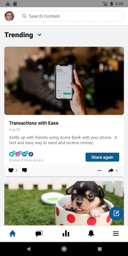 Sprinklr Extend is your new home for company content and employee advocacy. With easy access to the latest blog posts, company news, and more, you'll be able to easily share engaging content with your social networks. You will also have opportunities to upload your own content to be featured on the site.