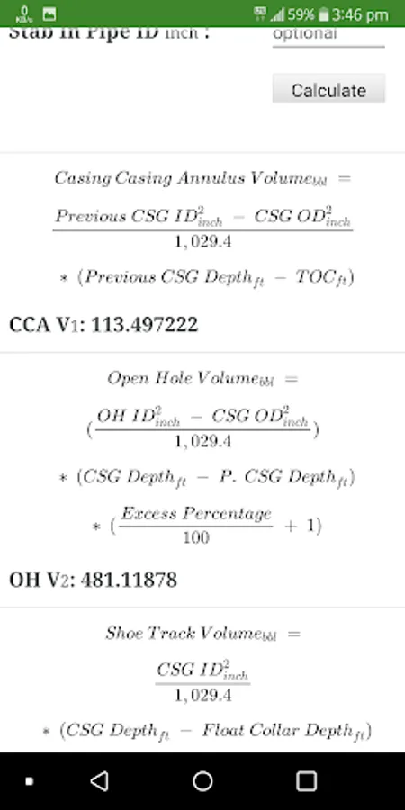 This app calculates important oilfield calculations in a matter of seconds using only a few input fields. After all the input has been entered, just press Calculate to show all the step by step calculations a process takes into getting the desired result.