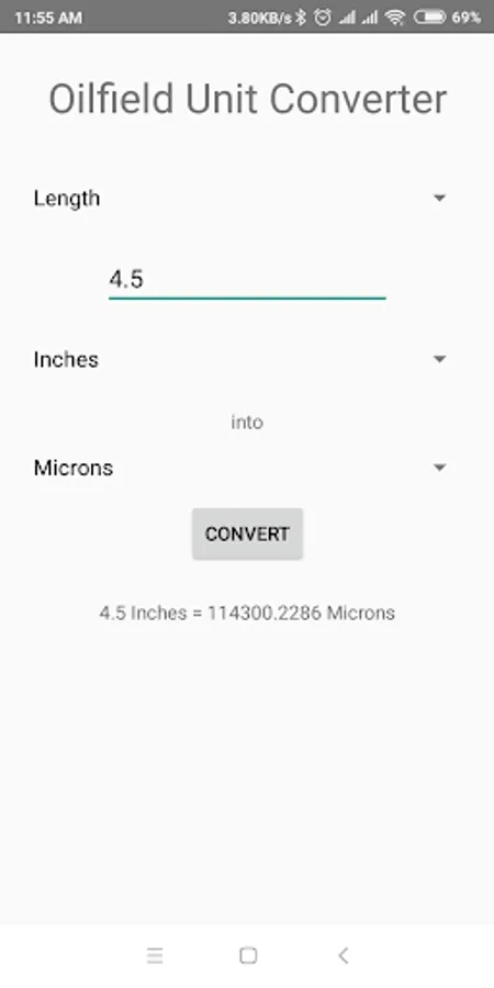 All measurements which are widely used in Oil & Gas sector are categorized and can be selected from drop down list. Then you can select useful units from drop down list for your desired calculation. After you input the value and tap 'Convert', it will show you the answer.