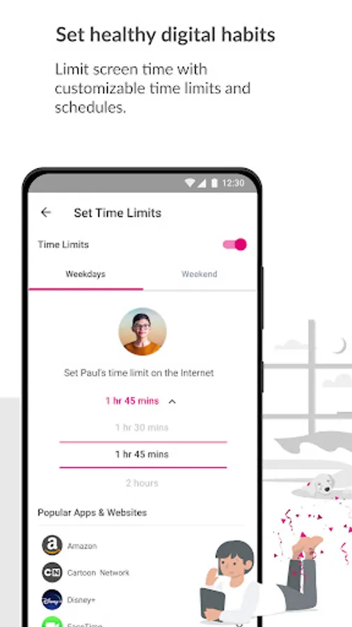 -Time limits: Set the total amount of time your child can spend online and on specific apps.