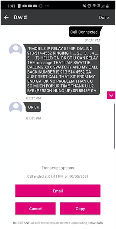 IP Relay, provided by T-Mobile for Android devices, is a no cost internet-based telecommunications Mobile app for people who are Deaf, Hard of Hearing, DeafBlind, or who have a Speech Disability who can make and receive relay calls and communicate using text on Android™-powered devices running Android 6.0 or higher, including Android™-powered tablets. IP Relay app is also available on wireless networks. Connect with a qualified relay operator via IP Relay. Features include integrated contact list, call history, and access to live customer care. Available only in USA and US territories. International calls will either be blocked or terminated. Registration is required to use this app. If no data plan service selected, casual data charges may apply. Learn more at t-mobile.com/IPRelay. Although IP Relay can be used for emergency calling, such emergency calling may not function the same as traditional 911/E911 services. By using the IP Relay app for emergency calling you agree that T-Mobile is not responsible for any damages resulting from errors, defects, malfunctions, interruptions, or failures in accessing or attempting to access emergency services through IP Relay, whether caused by the negligence of T-Mobile or otherwise.