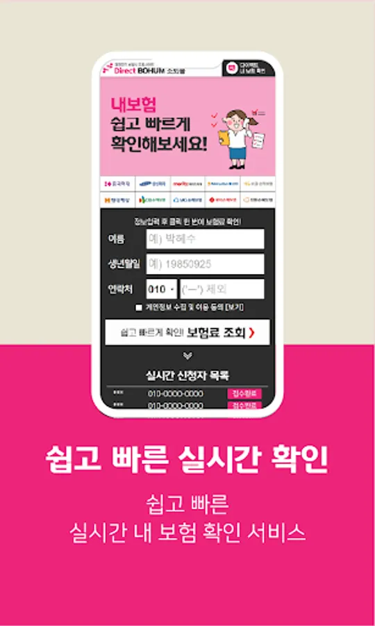 Without the cumbersome authentication process, simply enter your information to find your insurance details and hidden insurance details. Search My Insurance Find Hidden Insurance After downloading the insurance supermarket direct application, you can use My Insurance Inquiry and Find Hidden Insurance services. We even help you check your insurance premiums in real time by major domestic insurance companies.