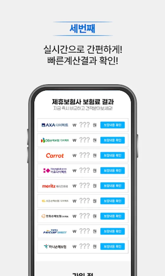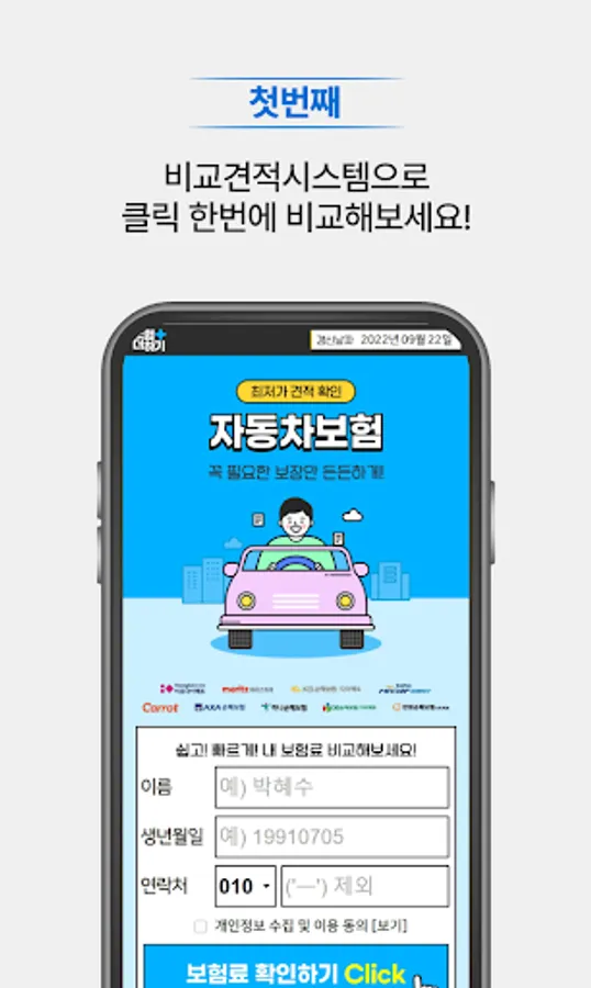 If you install the car insurance price comparison app, you can receive real-time insurance premium inquiry, car insurance price comparison by insurance company, as well as information about special contracts.