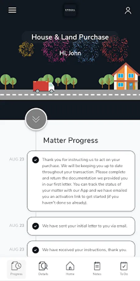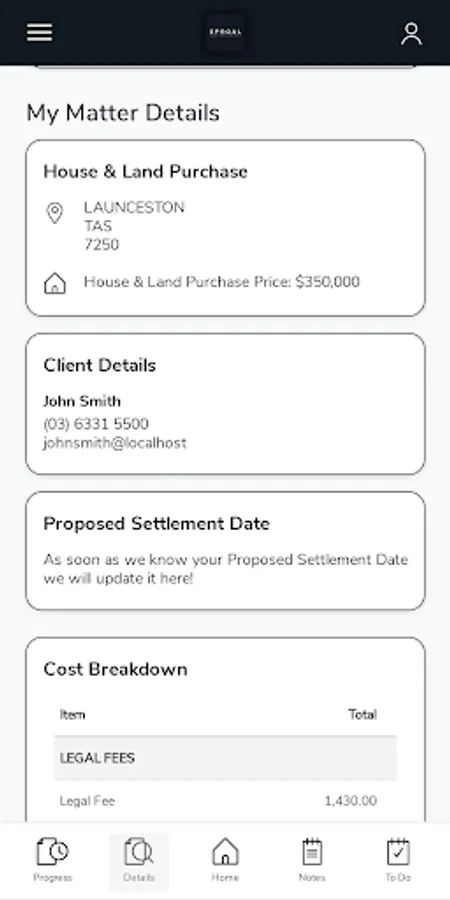 With any legal service, you’ll want visibility over the matter without having to pick up the phone! In a world of mobile devices, we now expect the ability to review progress at a time that is convenient to us. This app has been designed with features that keep you updated by providing live matter information. Whether you simply want to check the quote or if you wish to keep track of progress, this is the app for you. You’ll be able to clearly see each step in the legal matter so you understand the process.