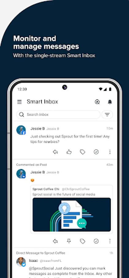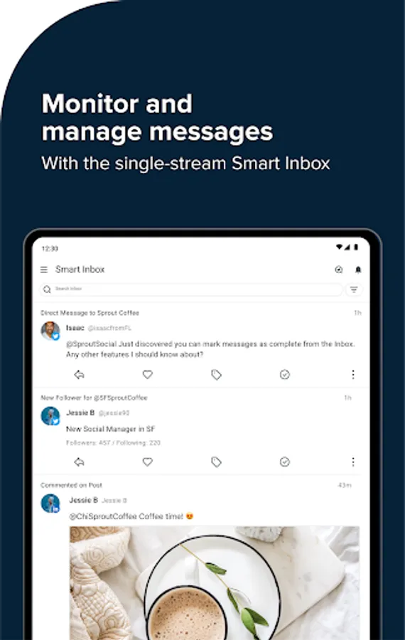 The Android app will put the power of Sprout Social in the palm of your hand, allowing you to: