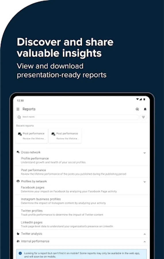 Engage with your audience, manage team workflow and monitor your brand while on the go. Whether you are behind the counter helping customers or on the tarmac headed to a conference in Vegas, you will have the power to keep your business social.