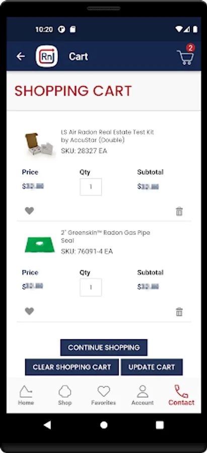 The Favorites section of the mobile app syncs with your Favorites on radonaway.com. By creating Favorites Lists, you can quickly order products that you commonly purchase together by ordering the Favorites List in Quantity.