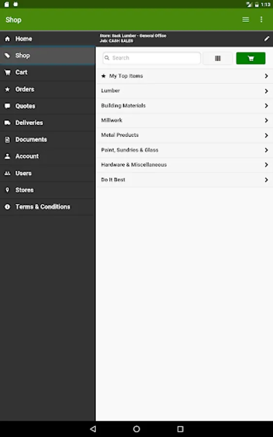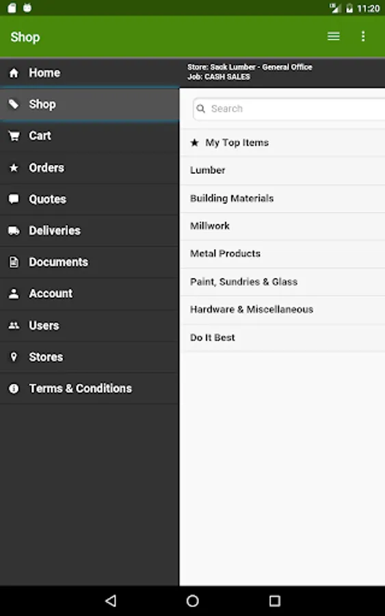 Shop, view documents, and check your Sack Lumber account from your Android device.