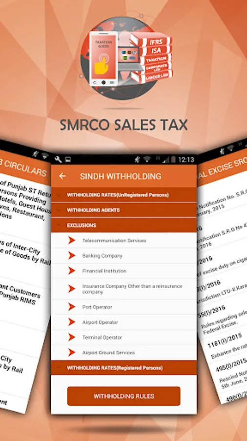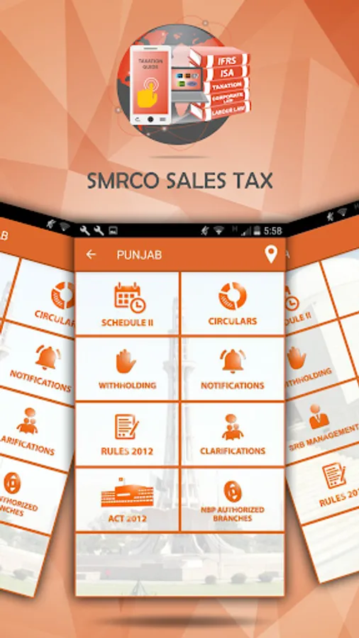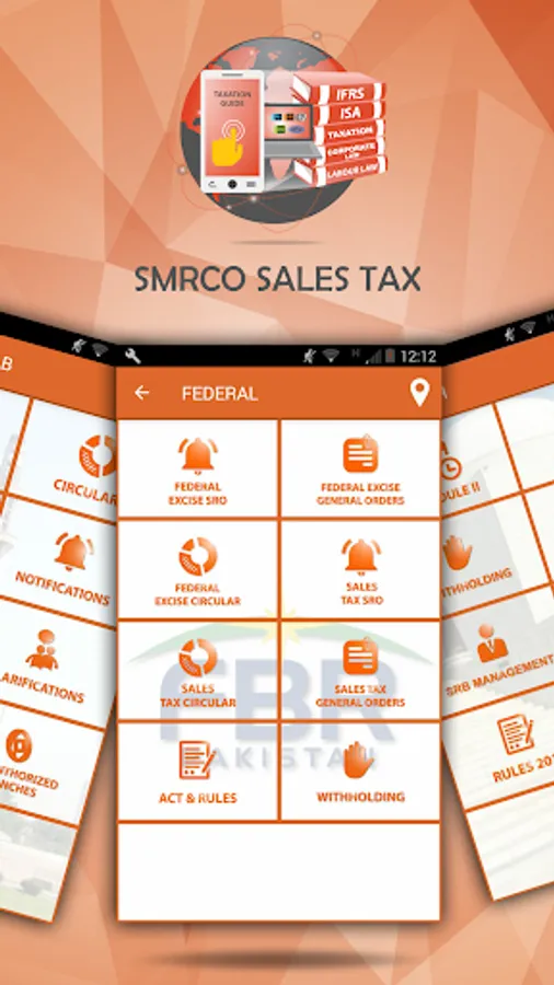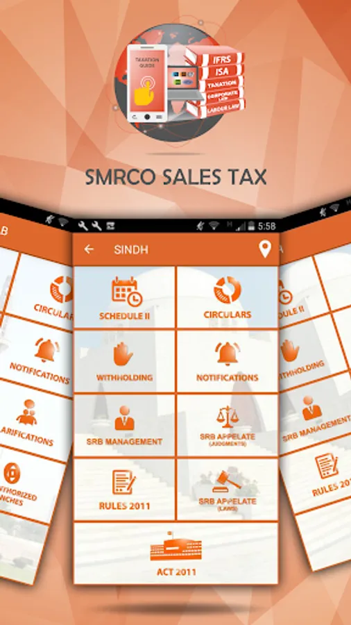 1. This mobile application makes readily available the following related to Federal Sales Tax Act 1990, Federal Excise Act 1990, The Sindh Sales Tax on Services Act 2011, The Punjab Sales Tax on Services Act 2012, The Khyber Pakhtunkhaw Finance Act 2013, The Baluchistan Sales Tax on Services Act 2015 and Islamabad Capital Territory (Tax on Services) Ordinance 2001: