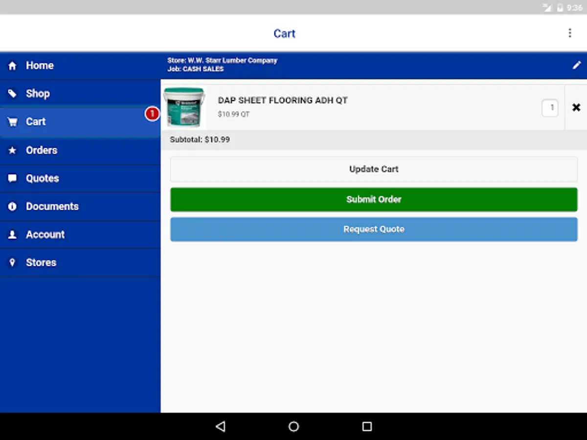 Shop, view documents, and check your W.W. Starr Lumber Company account from your Android device.