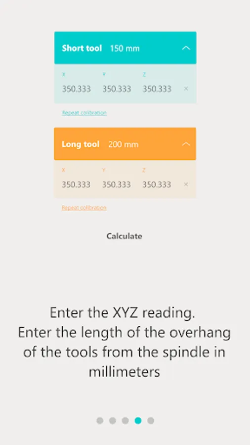 - Enter or recognize with OCR the XYZ reading. Enter the length of the overhang of the tools from the spindle in millimeters