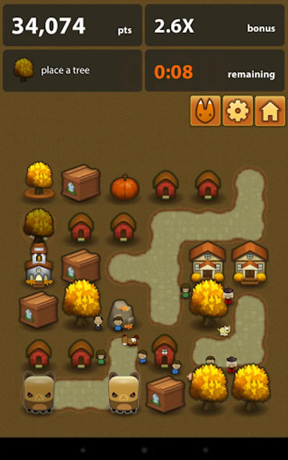 Triple Town is an original puzzle game in which you try to grow the greatest possible city. The larger the city you build, the more points you score. You build your city by matching three or more game-pieces: combine three grasses to make a bush, three bushes to make a tree... until you've filled the board with houses, cathedrals and castles. Along the way, you'll have to outwit giant bears who will try to block your progress.