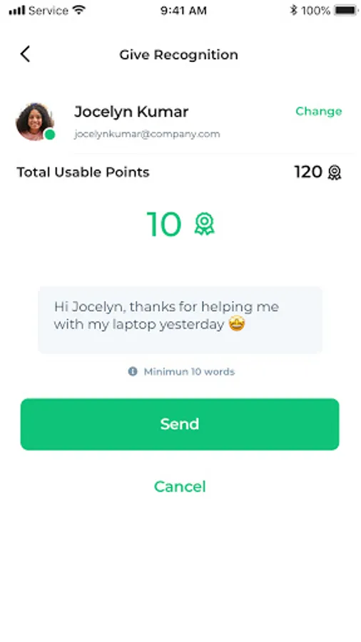 2. Peer-to-peer recognition: Show your team members how much you appreciate them with points and personalized messages