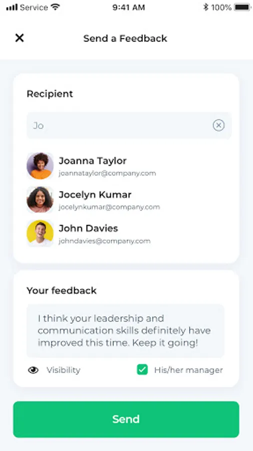3. Instant feedback: Send transparent feedback to others with privacy.