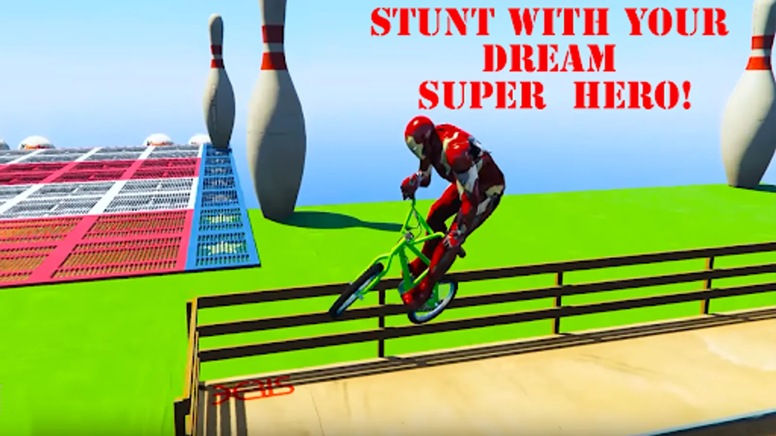 rooftop and their wheel barrow are on the stunt racing tracks. Players driving bicycles as superheroes can easily do stunts and complete all levels to become champions. Superhero Bmx Mega Ramp Racing Game is one of the best Games ever, just like a Superhero speedy rider.