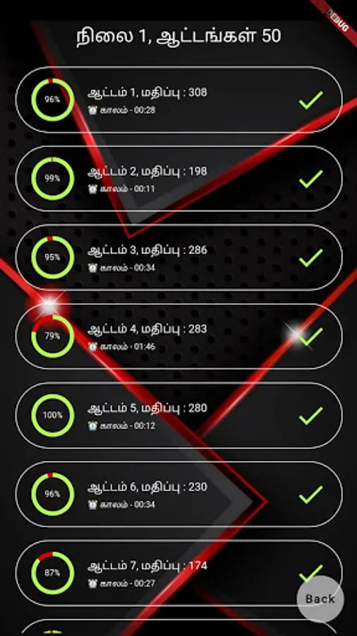 ஒரு நிலையில் இருக்கும் எந்த ஆட்டத்தையும் ஆடலாம். முந்தைய நிலையில் 80% ஆடினாலே, அடுத்த நிலை ஆட விடுவிக்கப்படும்.