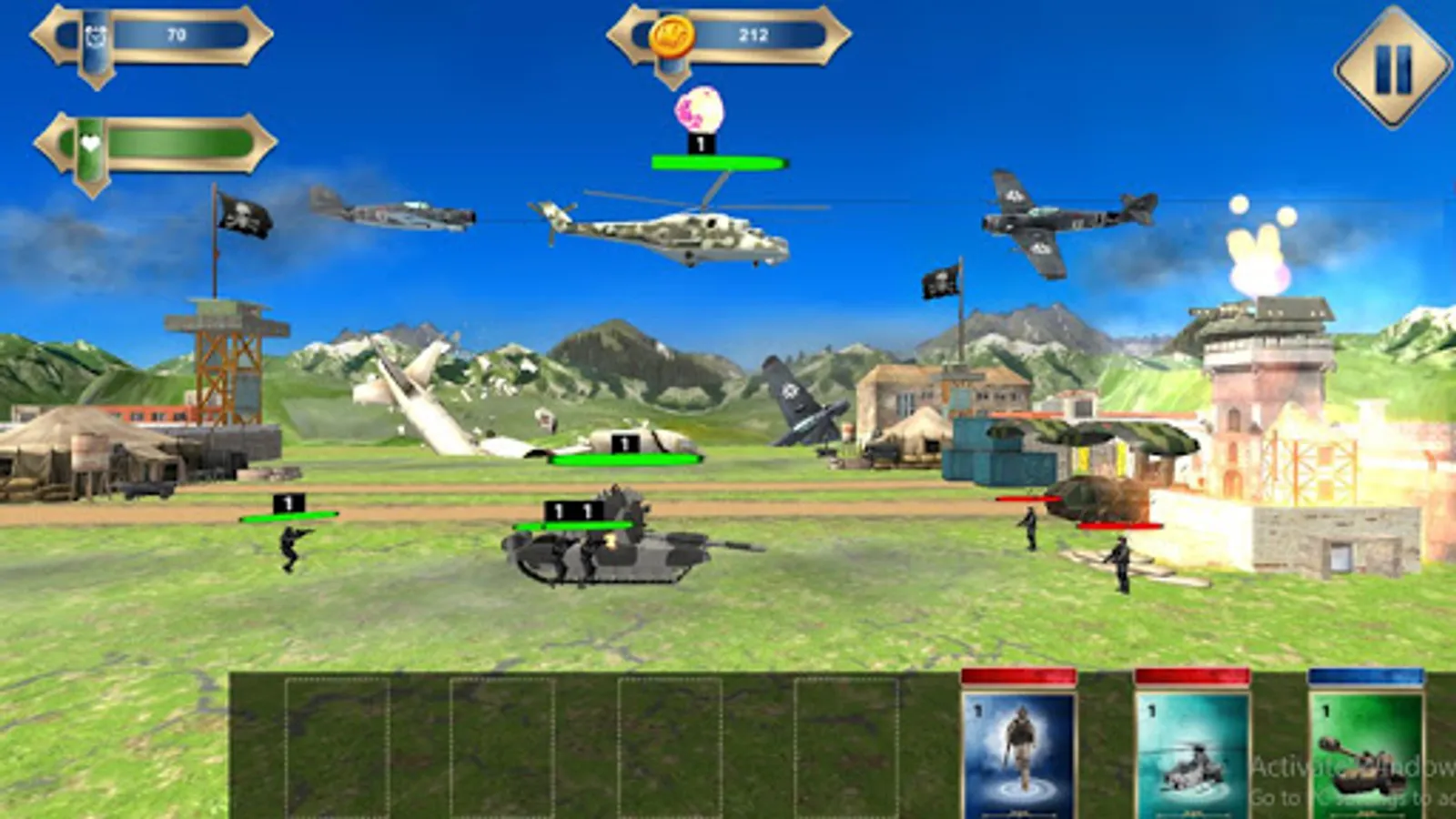 As one of the few surviving commanders after World War 2, defend your base, customize your units, and attack enemies to survive. Become the ultimate warrior in this offline military strategy game by battling to gain control of the world with the help of your soldiers, tanks, helicopters, and the Military Strength.