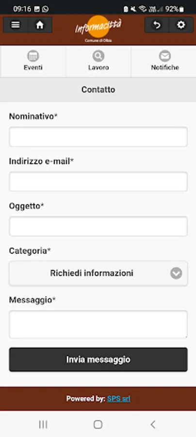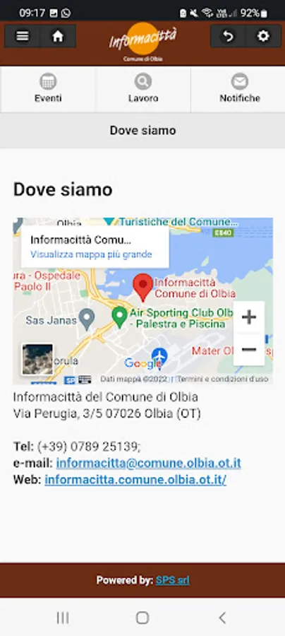 The Informacittà service of the Municipality of Olbia, made available by the Department of Social Policies, Equal Opportunities, Health Policy and Animal Protection, is provided by Sviluppo Performance Strategie srl (SPS srl). www.spssrl.net.