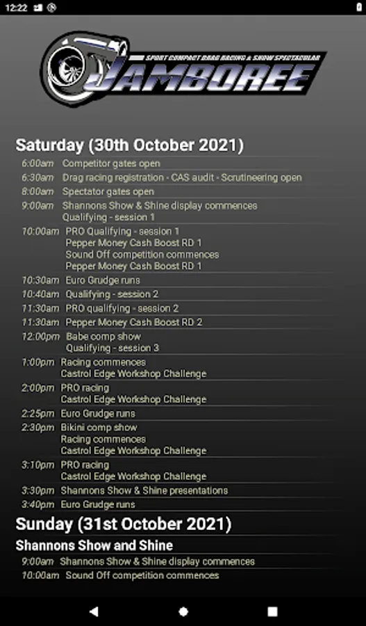 An UNOFFICIAL companion app for Jamboree 2021, to be held at Willowbank Raceway, Brisbane on 30/31 October 2021.