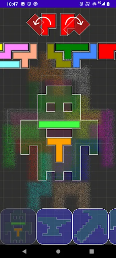 There are twelve basic shapes, which can be flipped and rotated and placed together to make a variety of shapes. Your job is to combine the pieces in order to make the shapes.