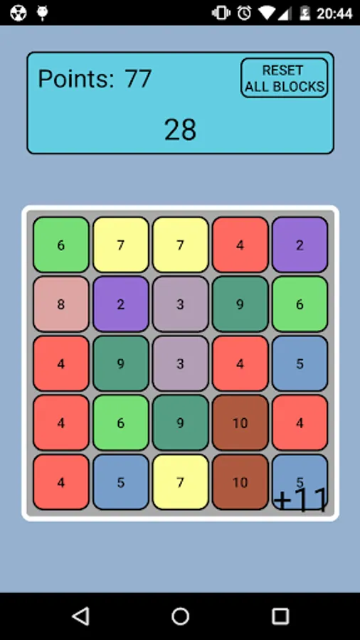 It's easy just select 2 or more blocks number to get 11. The more you join the more point's you will get. Get extra time and board reset for merging 4 or 5 blocks.