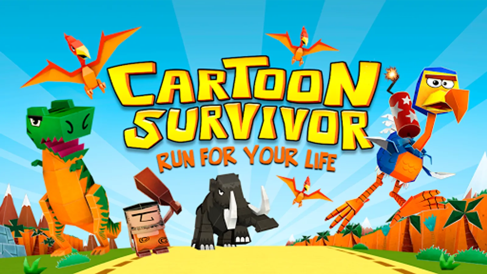 Cartoon Survivor is a vibrant 3D adventure runner set in a colorful prehistoric world. You must run, jump and glide your way through hazardous obstacle courses full of feisty creatures like dinosaurs, mammoths, tigers and snakes.