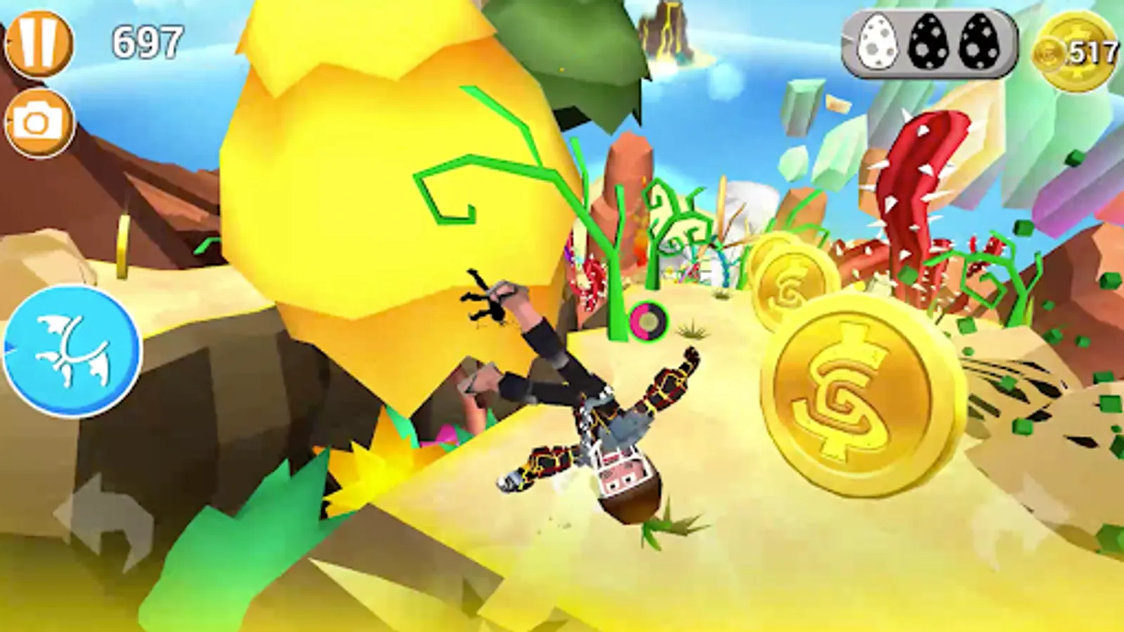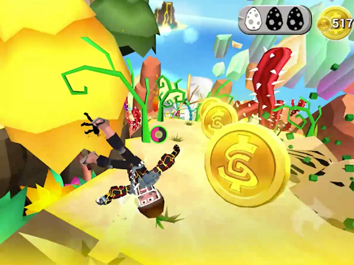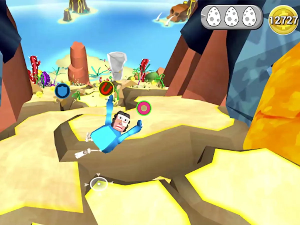 While hunting for some dinosaur eggs, you disturb a mighty volcano and are tossed down the side of the mountain. You are forced to keep ‘tumbling’ down the mountain avoiding obstacles and hazards in order to remain ahead of the pursuing lava flow.