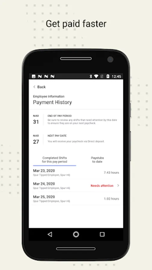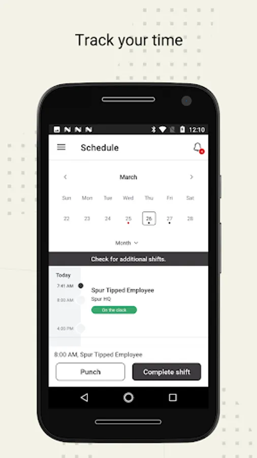 Punch in and out through the app or your workplace kiosk. You can edit your time and get it reviewed prior to payday.