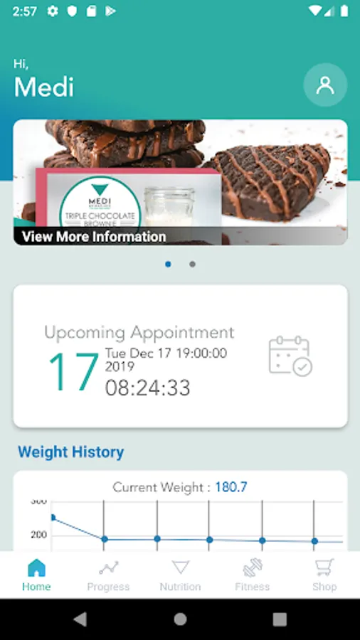 - Progress – view detailed weight measurements from your Medi-Weightloss® appointment.