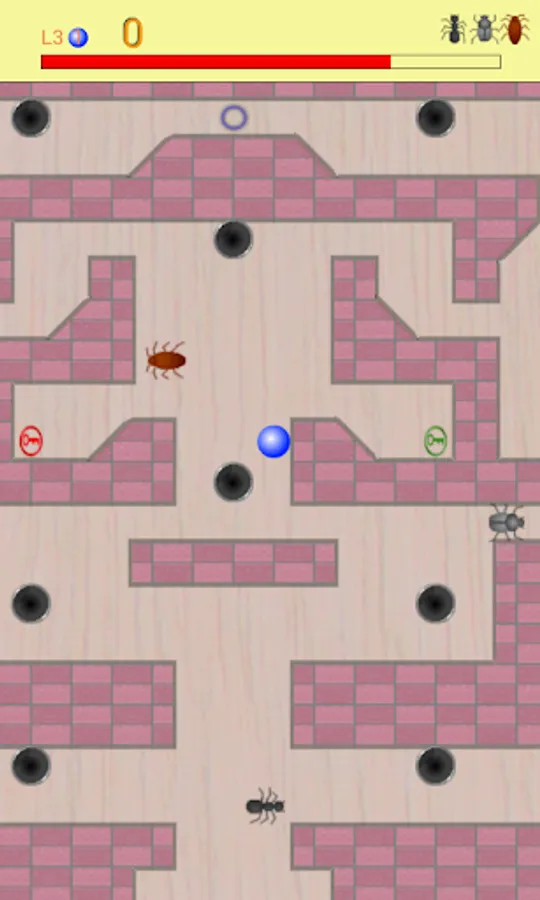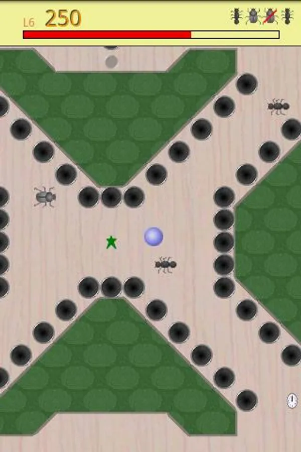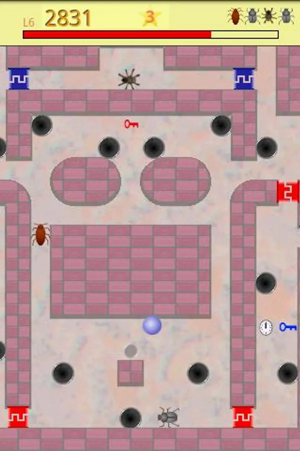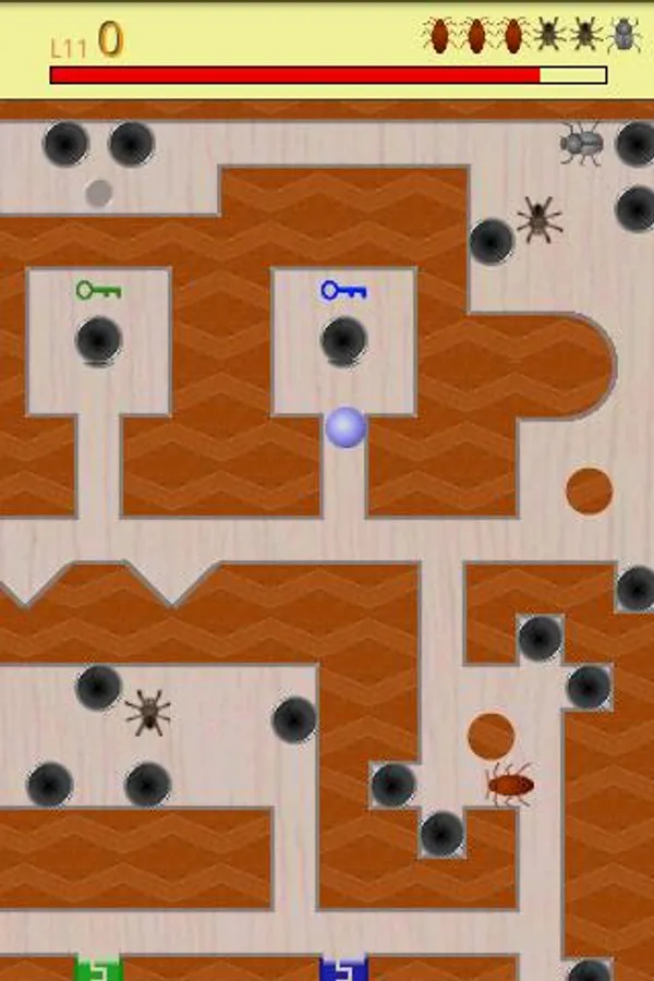 Tilt your phone to roll the ball around the maze. Squish the bugs by running over them, but be careful not to fall into the traps. Find the exit to the maze before time runs out. By playing well and earning stars, harder levels become unlocked.