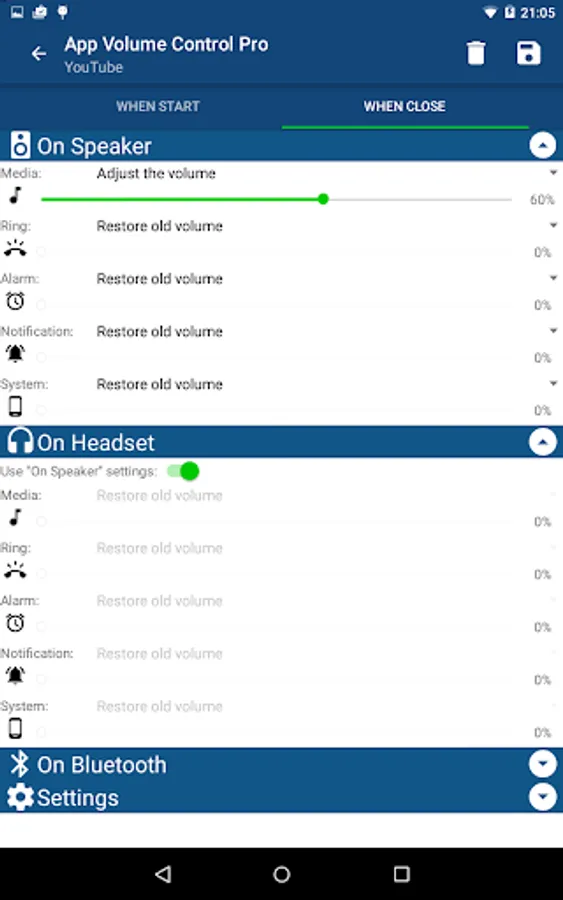 Once set, the application takes care of changing the volume of your applications as soon as they appear.