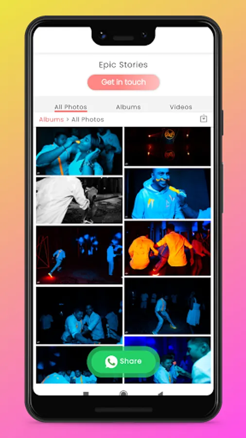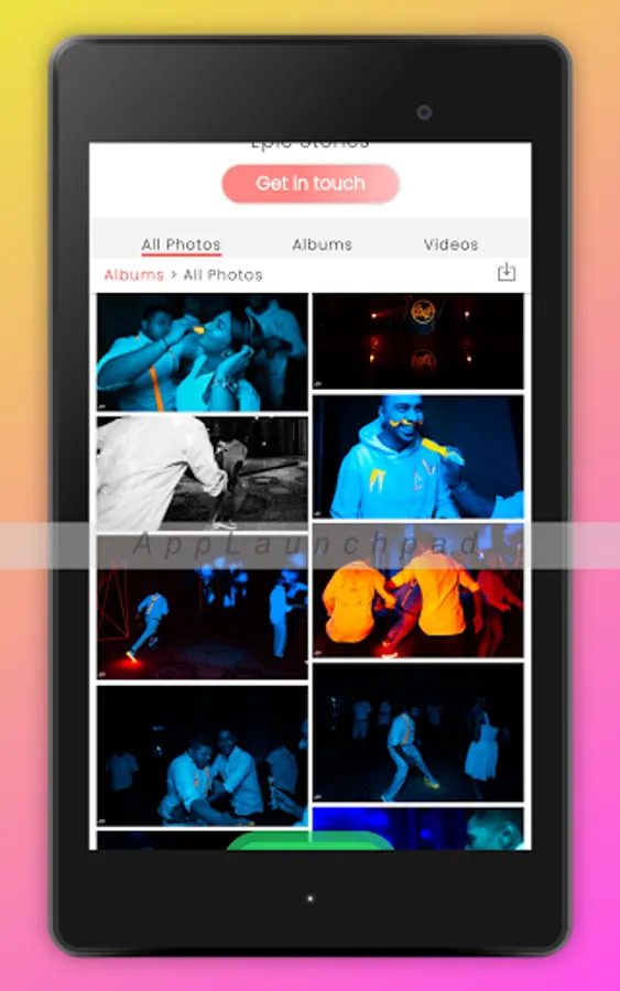 Epic Stories Photography Official Mobile App enables you to view the special event’s images instantly in a pleasing view.