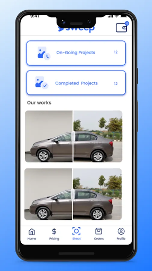 Click and upload images from Sweep Dealer official app to get edited images on Studio backgrounds instantly.