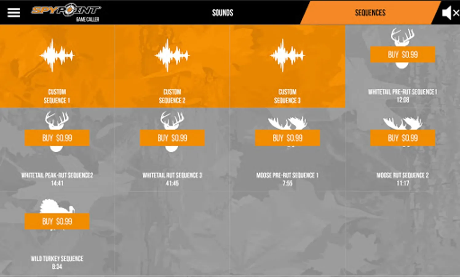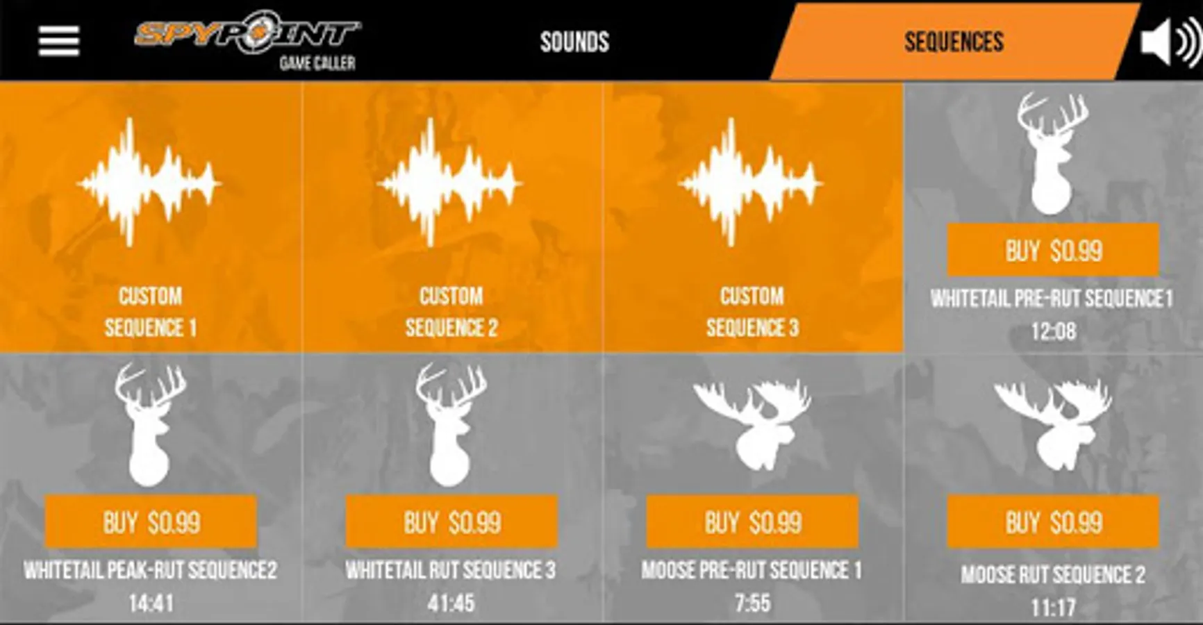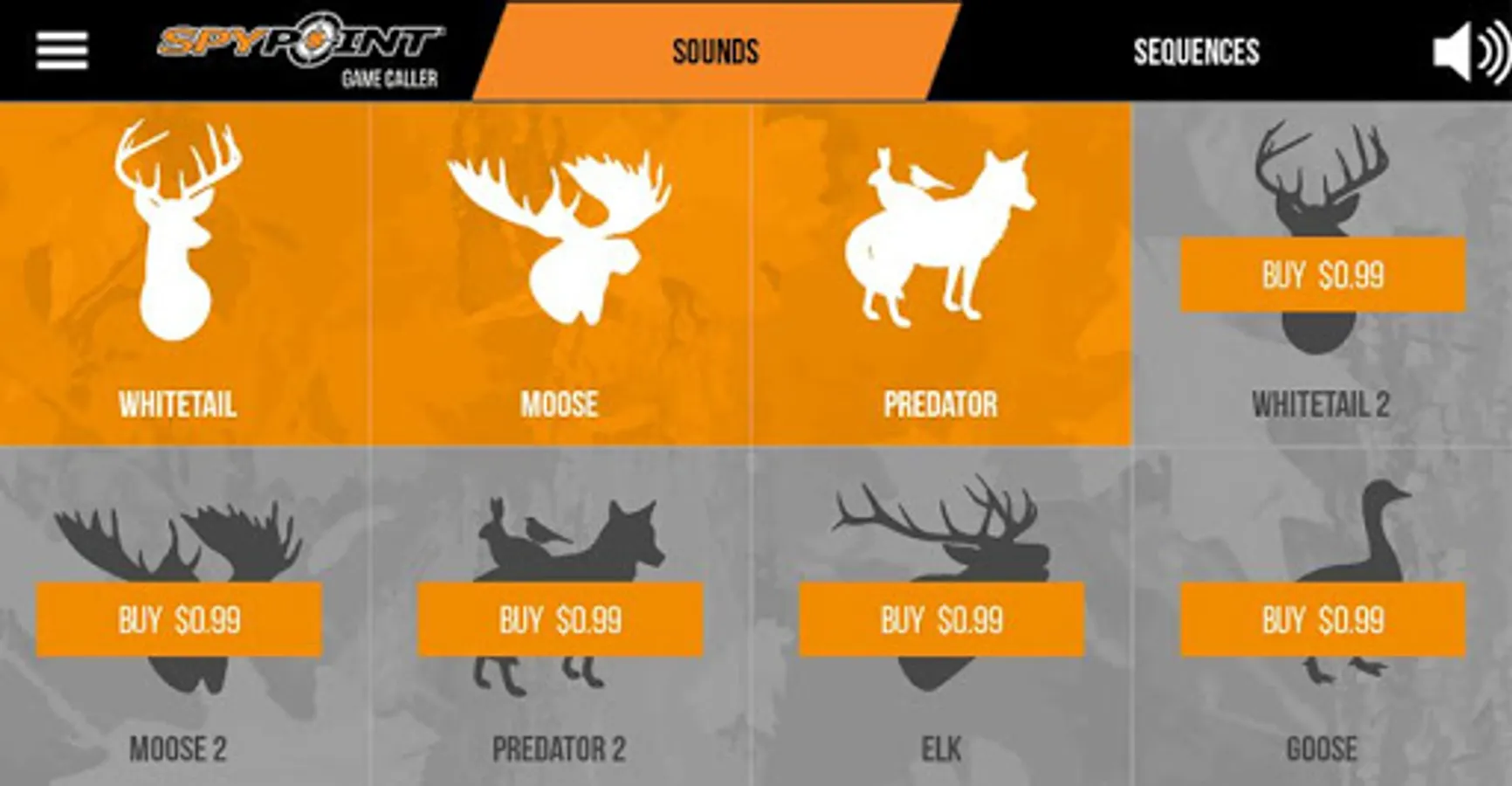 The SPYPOINT Game Caller application was especially designed for hunters. It turns your tablet into an easy electronic game caller! Whitetail, moose and predator sounds (5 sounds each) are included and more are available to buy.