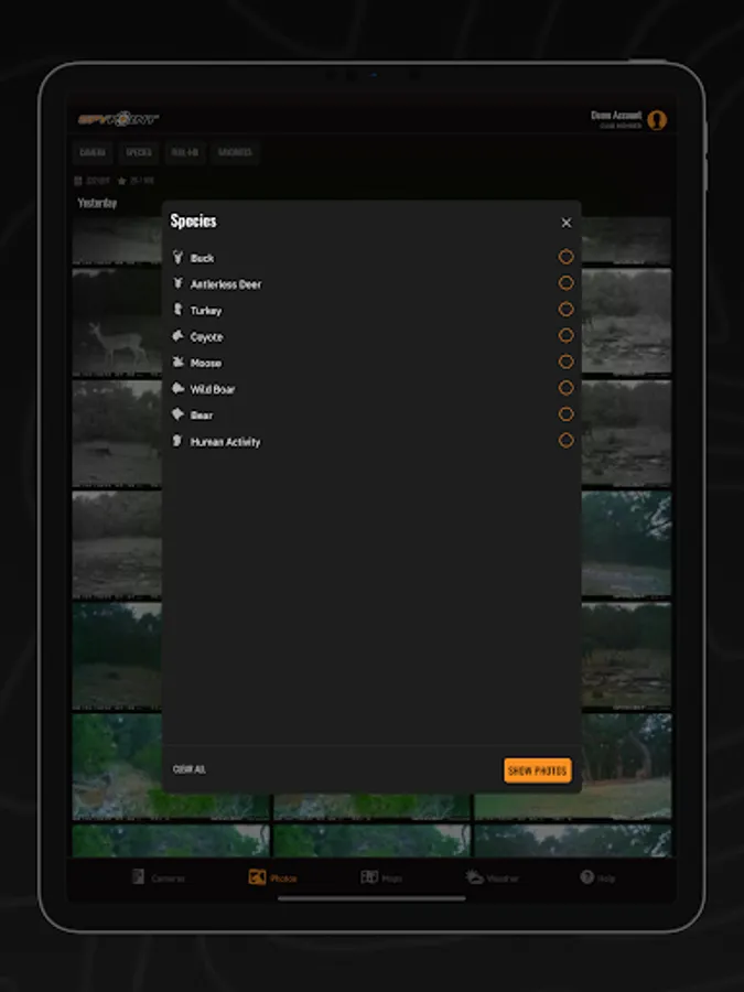 Designed to work with the LINK series cellular trail cameras, the SPYPOINT app allows you to receive photos from your camera directly to your smartphone or tablet. You can activate your new camera, view your photos, manage and monitor your trail camera from anywhere. Includes BUCK TRACKER species recognition technology that allows for quick sorting and filtering of all your photos. The app provides a simple and easy way to: