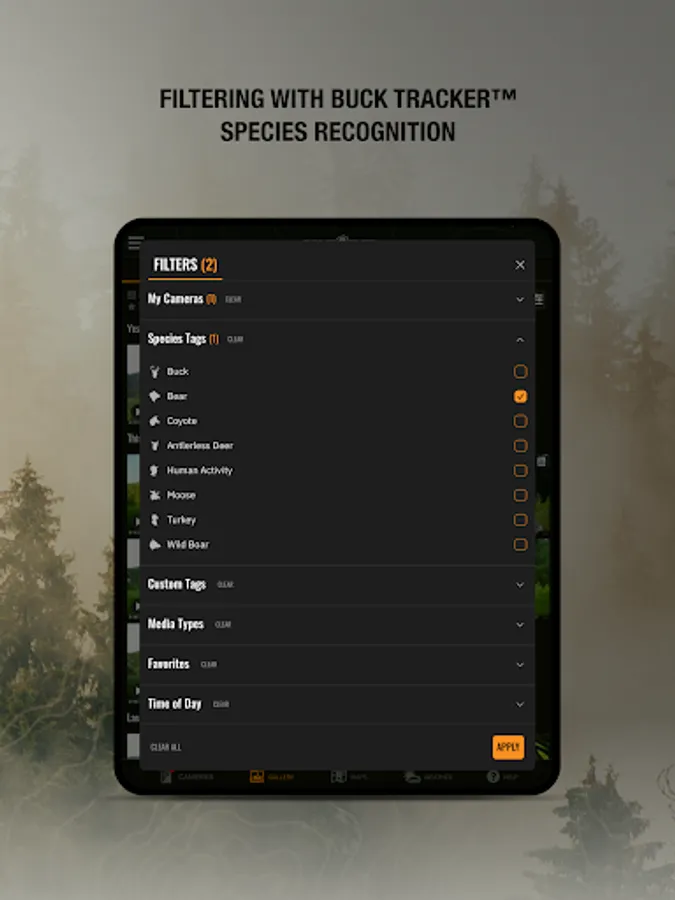- Quickly sort and filter photos using species tags that are automatically applied with BUCK TRACKER™ AI technology.