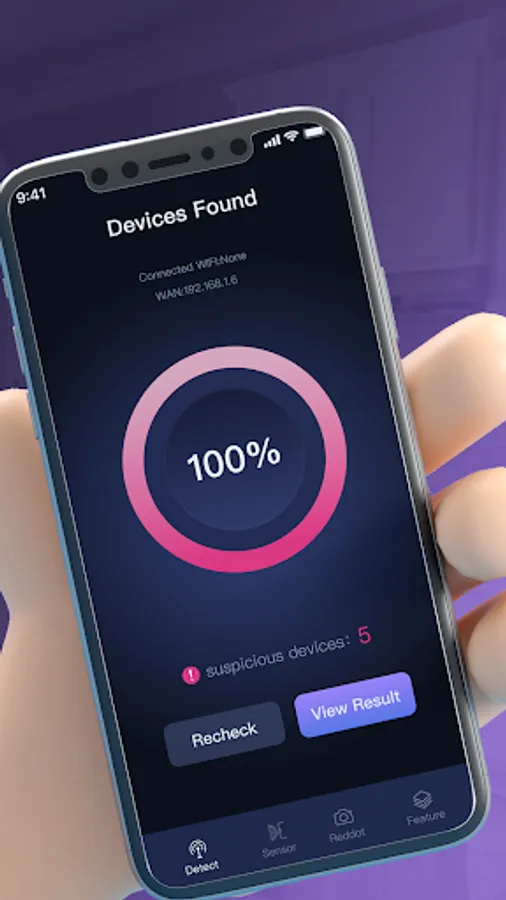 Scan your WiFi network with one tap and detect any suspicious devices or hidden cameras. Stay safe and secure in your private spaces.
