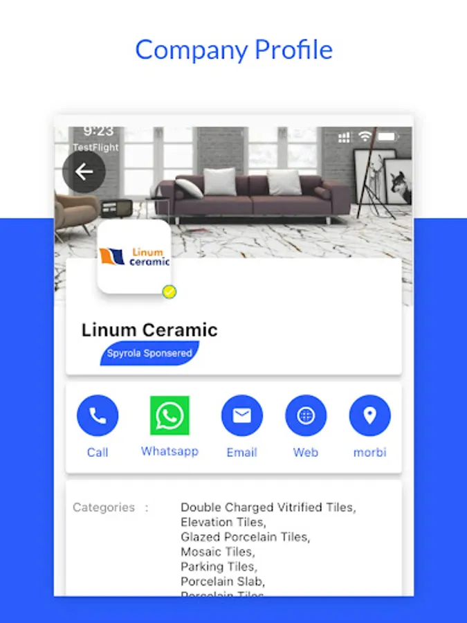 Our team's vision is to provide the best deal for users of the Spyrola Tiles B2b App. We will give a unique and professional experience with this digital platform for tiles and sanitaryware users.