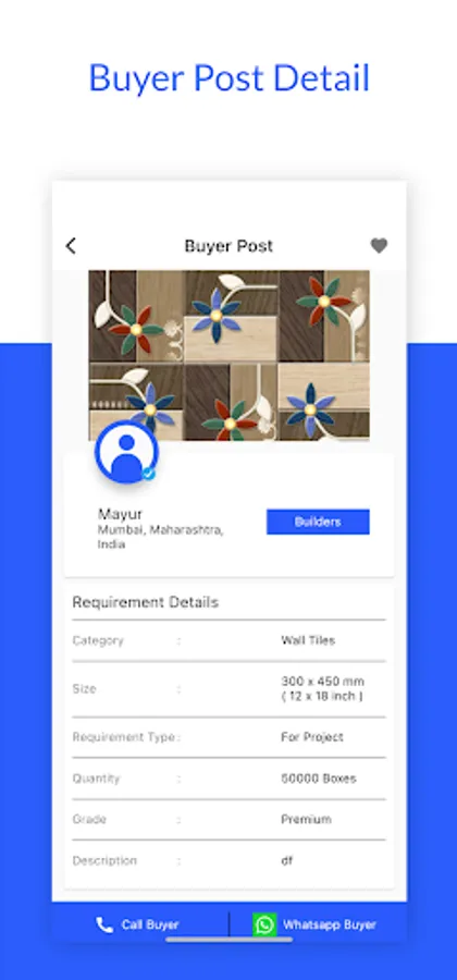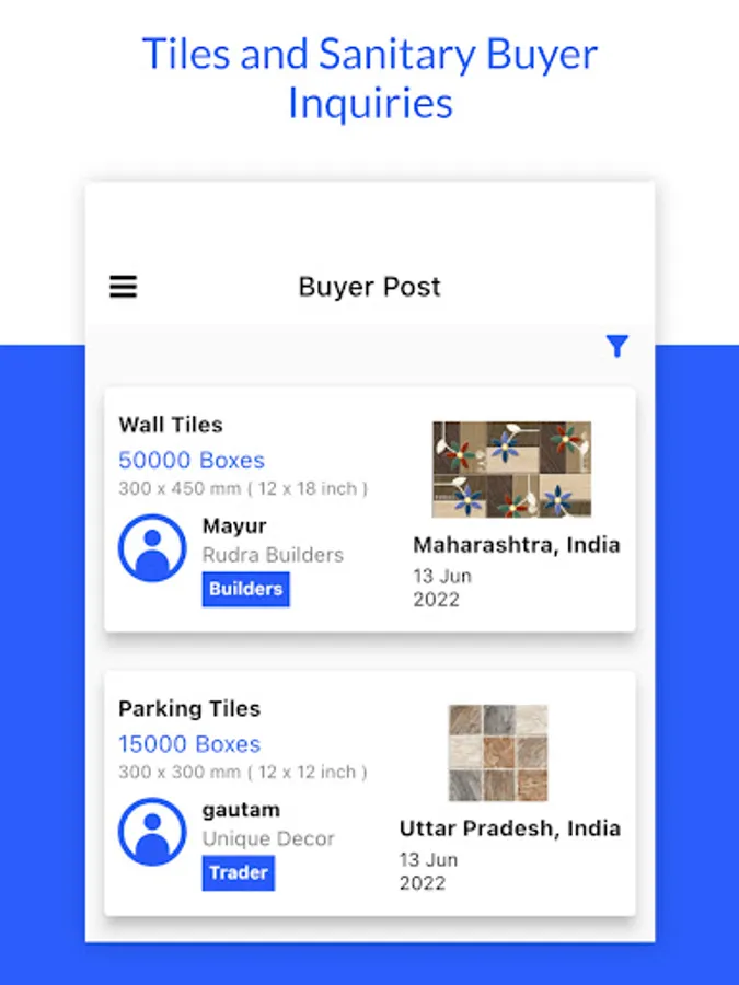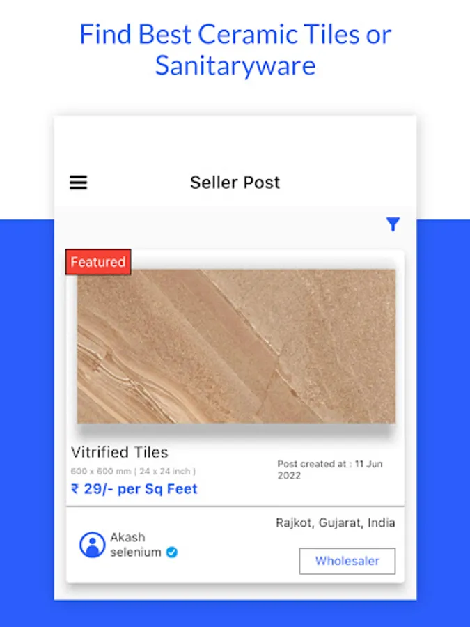 4) With elegant UI buyers can have the latest details of the ceramic tiles market.