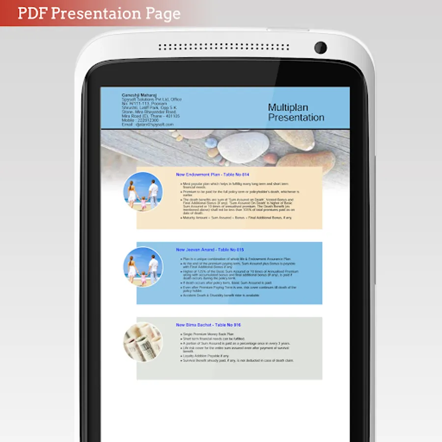 * Single, Multi-plan Presentations (SMS/Email/Whatsapp sharing in PDF)