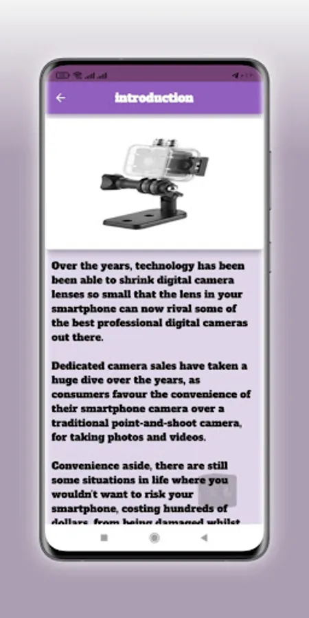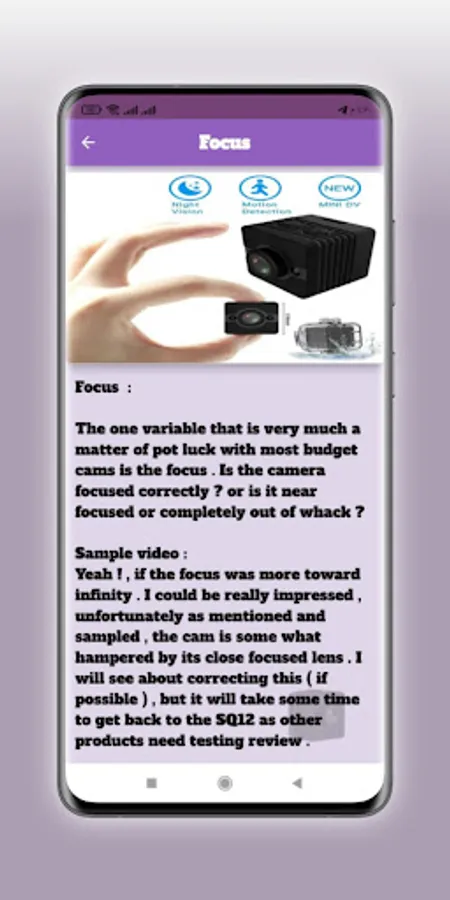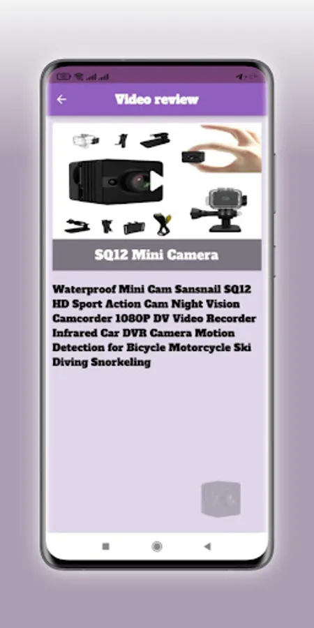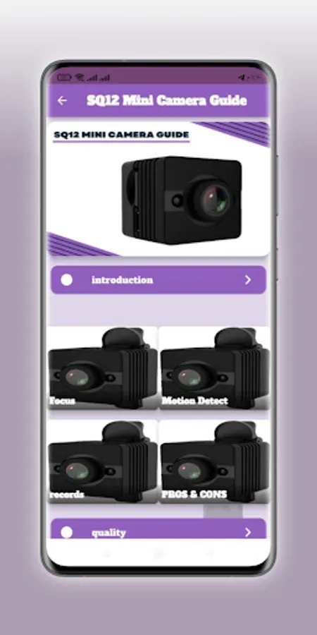 SQ12 Mini Camera The application gives you specifications and images for a camera