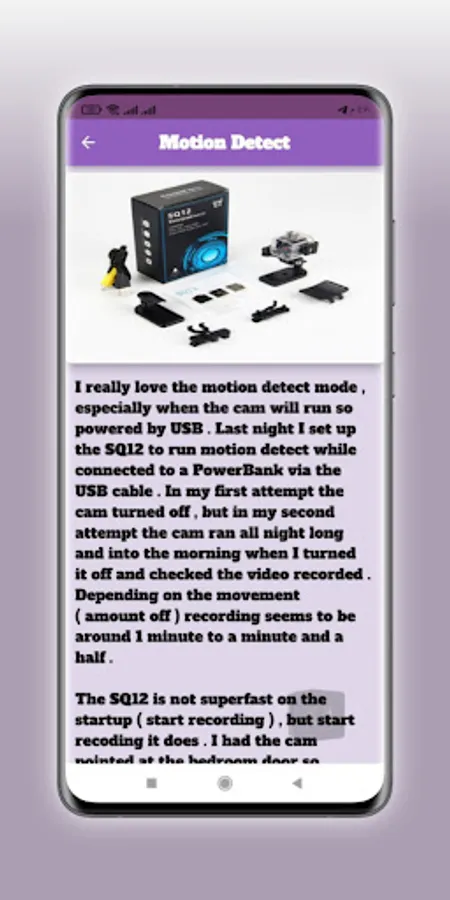 Guide application to help you how to use the product. We have all the information about it in the guide application SQ12 Mini Camera