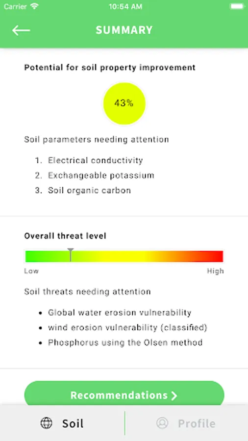 The Soil Quality Mobile App (SQAPP) offers an easy-to-use tool that brings global soil data into the decision-making sphere of land users and other interested end users. SQAPP can, for any terrestrial location in the world for which there are soil data, provide the user with selected soil quality indicators and soil threat indicators. Rather than scoring soil quality in absolute terms, the app scores the soil quality relative to the average soil quality within areas with similar soil and climatic conditions (so-called pedo-climatic zones). For example, 80% means that only 20% of the area of the selected pedoclimatic zone is considered to have a higher indicator value than the point location being assessed. Soil threats are scored based on general, scientifically-derived threshold values. Both soil quality indicators and soil threat indicators with low scores are indicated and management solutions are suggested for the combination of indicators flagged as low in a specific location.