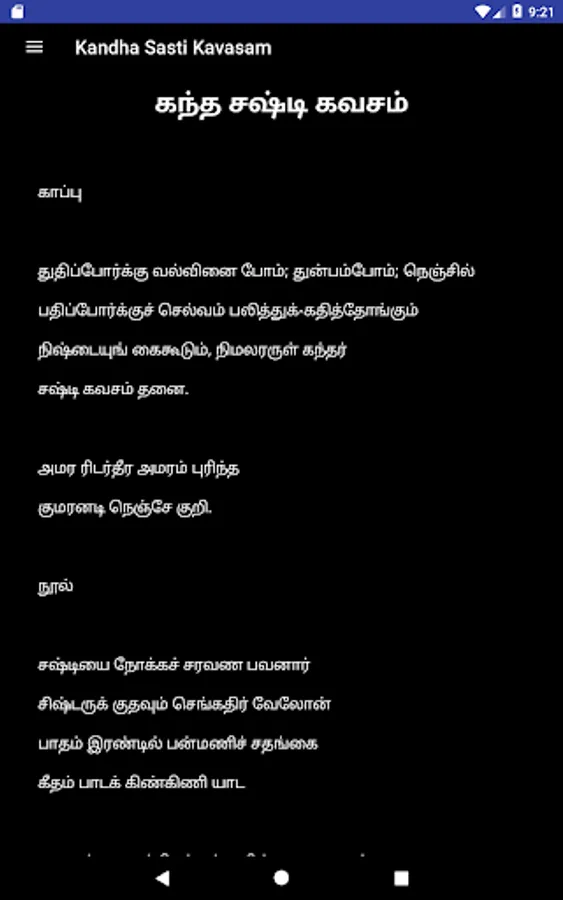 is a Hindu devotional song composed in Tamil by Devaraya Swamigal (born c. 1820), a student of Meenakshi Sundaram Pillai, on Lord Muruga, the son of Lord Shiva. Kanda Sashti Kavasam was composed in the 19th century. The song has been composed in praise of the Lord, seeking to shower His grace.