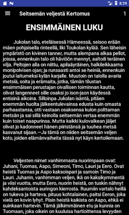 Seitsemän veljestä (Seven Brothers) is the first and only novel by Aleksis Kivi, the national author of Finland, and it is widely regarded as the first significant novel written in Finnish and by a Finnish-speaking author. Today, some people still regard it as the greatest Finnish novel ever written...