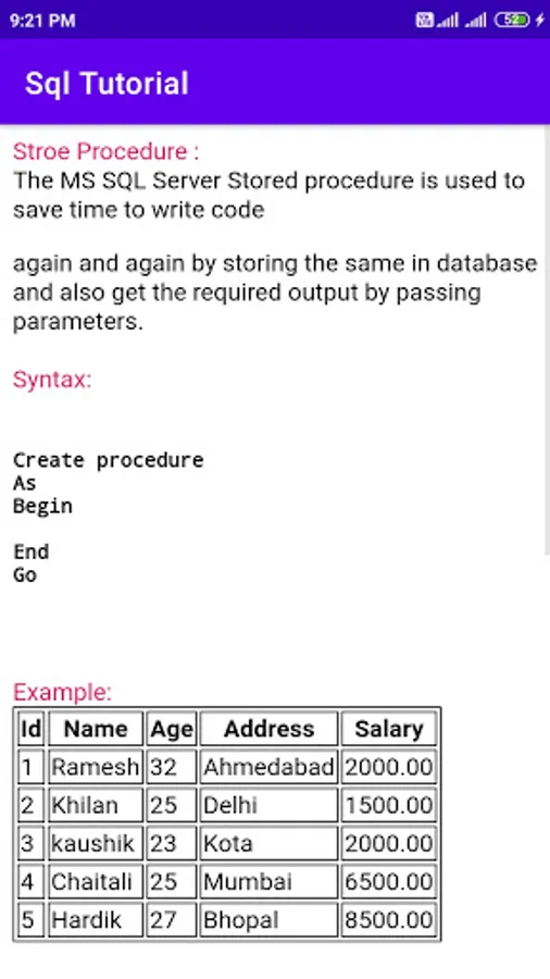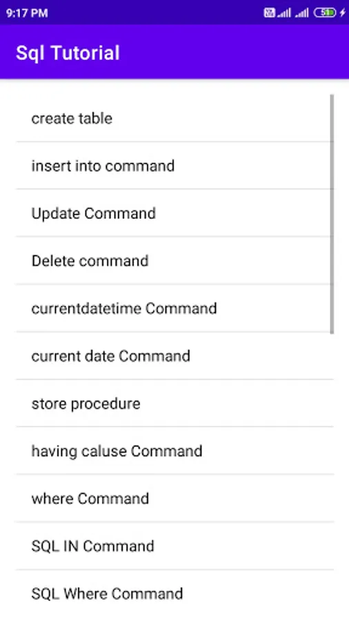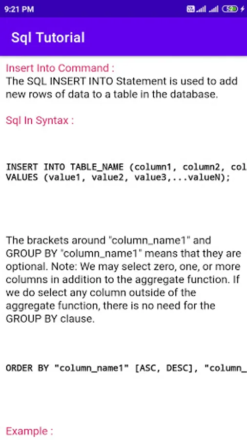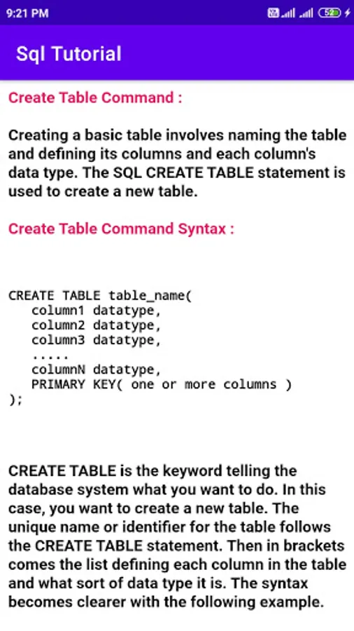 SQL tutorial app is provide a basic tutorial and SQL commands.
